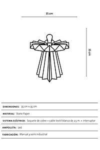 Materiality: Stone paper or mineral paper (mineral powder substrate and recine). Textile cable, lamp cover and copper rosette.