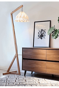 En nuestra línea Mokuzai, la madera ha sido trabajada a través de una figura simple, geométrica, sobria transformándose en un pedestal que luce la composición de ángulos y pliegues tan característicos de nuestras pantallas.